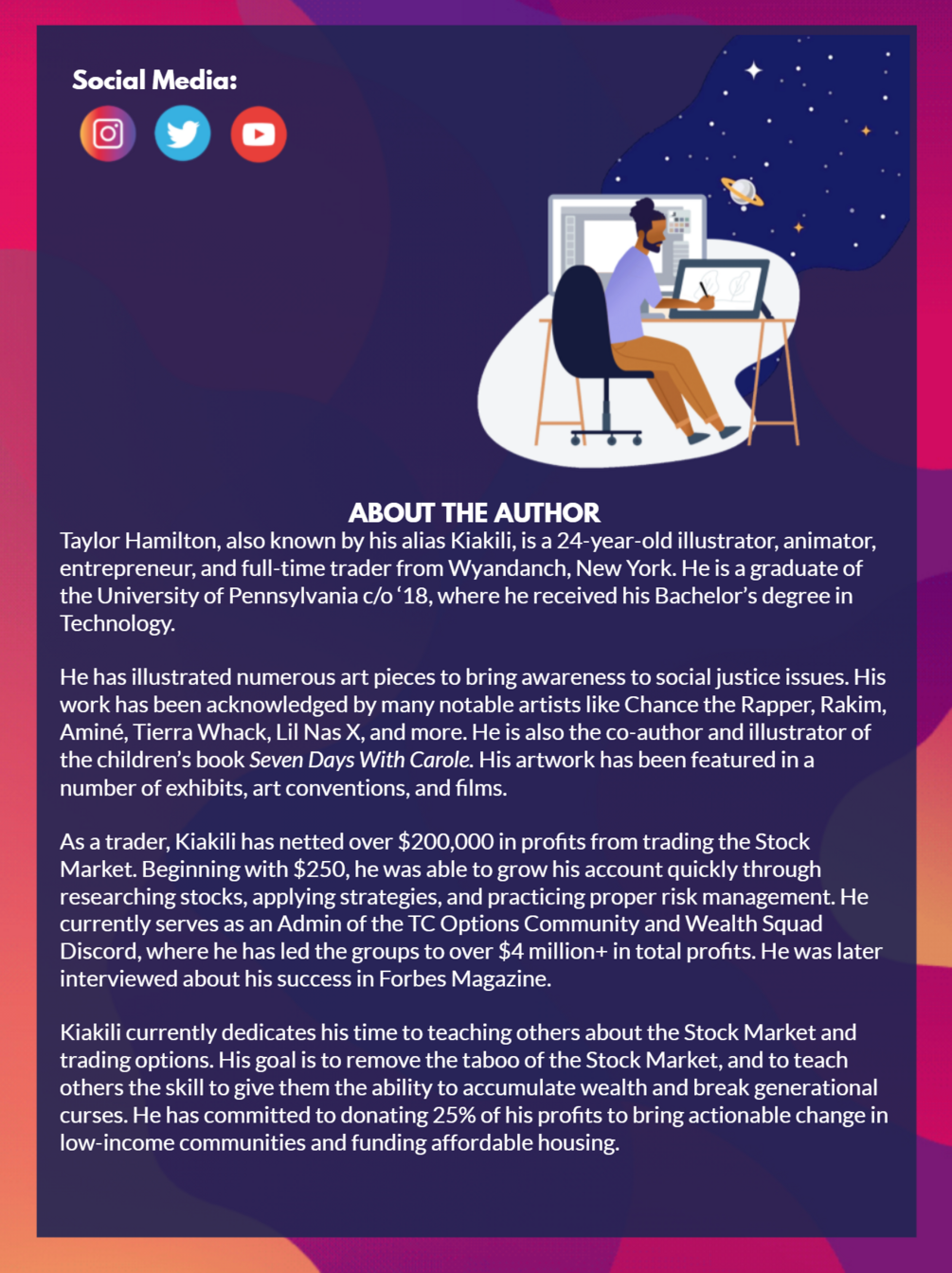 Featured in Forbes Magazine, 23-year-old illustrator turned trader Taylor "Kiakili" Hamilton netted over $200,000 in profits in his first year of trading, and has led a trading group to over $3 million+ profits.